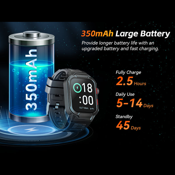 Equipped with a 350mAh battery, offer up to 5-14 days of use and lasts up to 45 days on standby. No more worrying about charging every night—it is ready when you are. * Actual battery life may vary based on user scenarios and intensity of use.