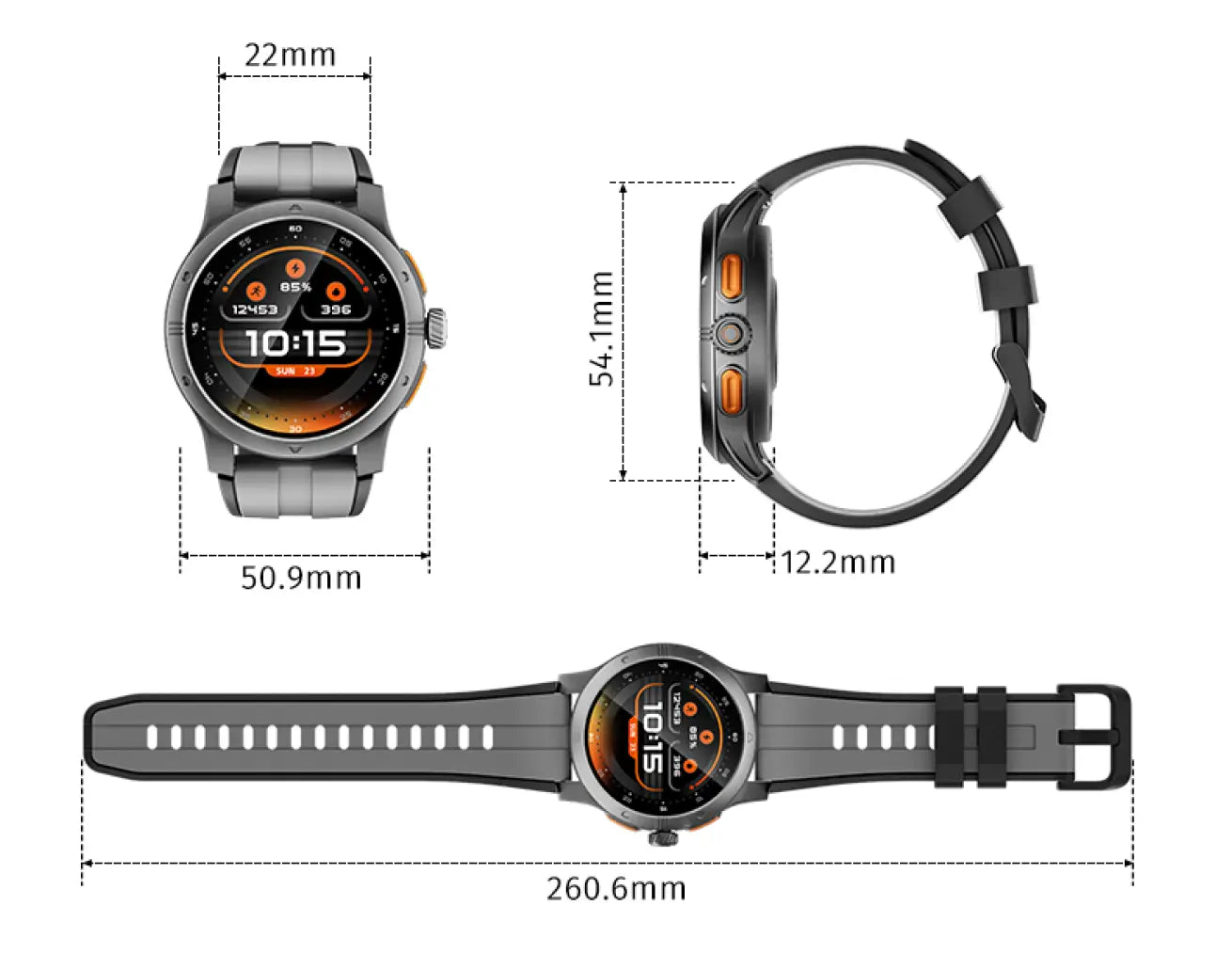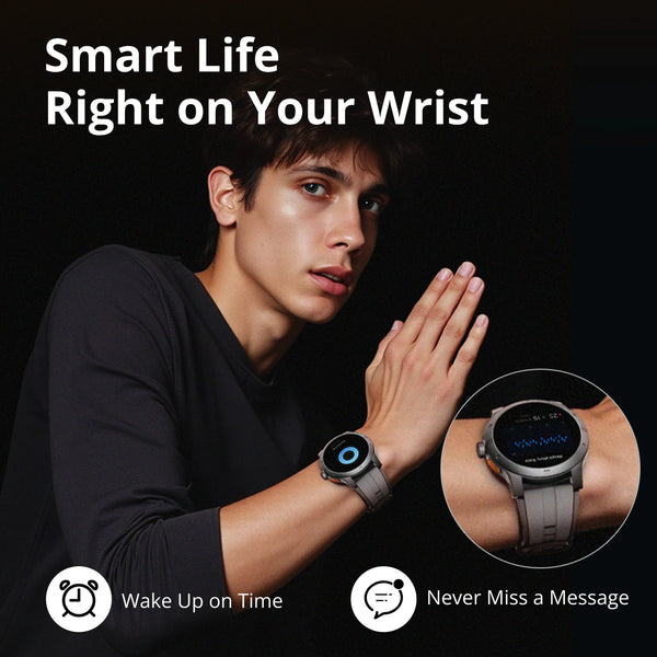 Ich war besorgt, 1.43" Das Zifferblatt wirkt für ein Mädchenhandgelenk vielleicht etwas groß, aber es sieht tatsächlich sehr stylisch aus. Das Modell in Vulkangrau ist elegant genug, um es im Büro zu tragen. Die Benutzeroberfläche ist flüssig und reagiert ruckelfrei beim Scrollen durch Nachrichten.